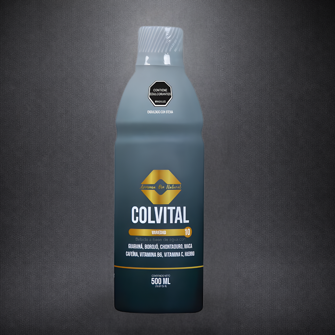 COLVITAL es una bebida energizante natural diseñada para aumentar la vitalidad, mejorar el rendimiento físico y apoyar el bienestar general. Su fórmula combina ingredientes reconocidos por su aporte energético, como el guaraná, el borojó, el chontaduro y la maca, junto con cafeína natural para potenciar la energía diaria.